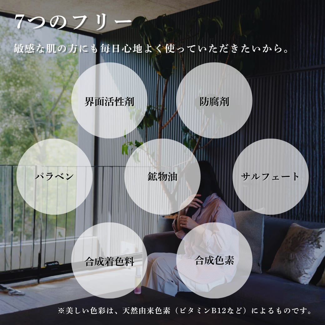 ✓ 防腐剤 ✓ 界面活性剤 ✓ サルフェート ✓ パラベン